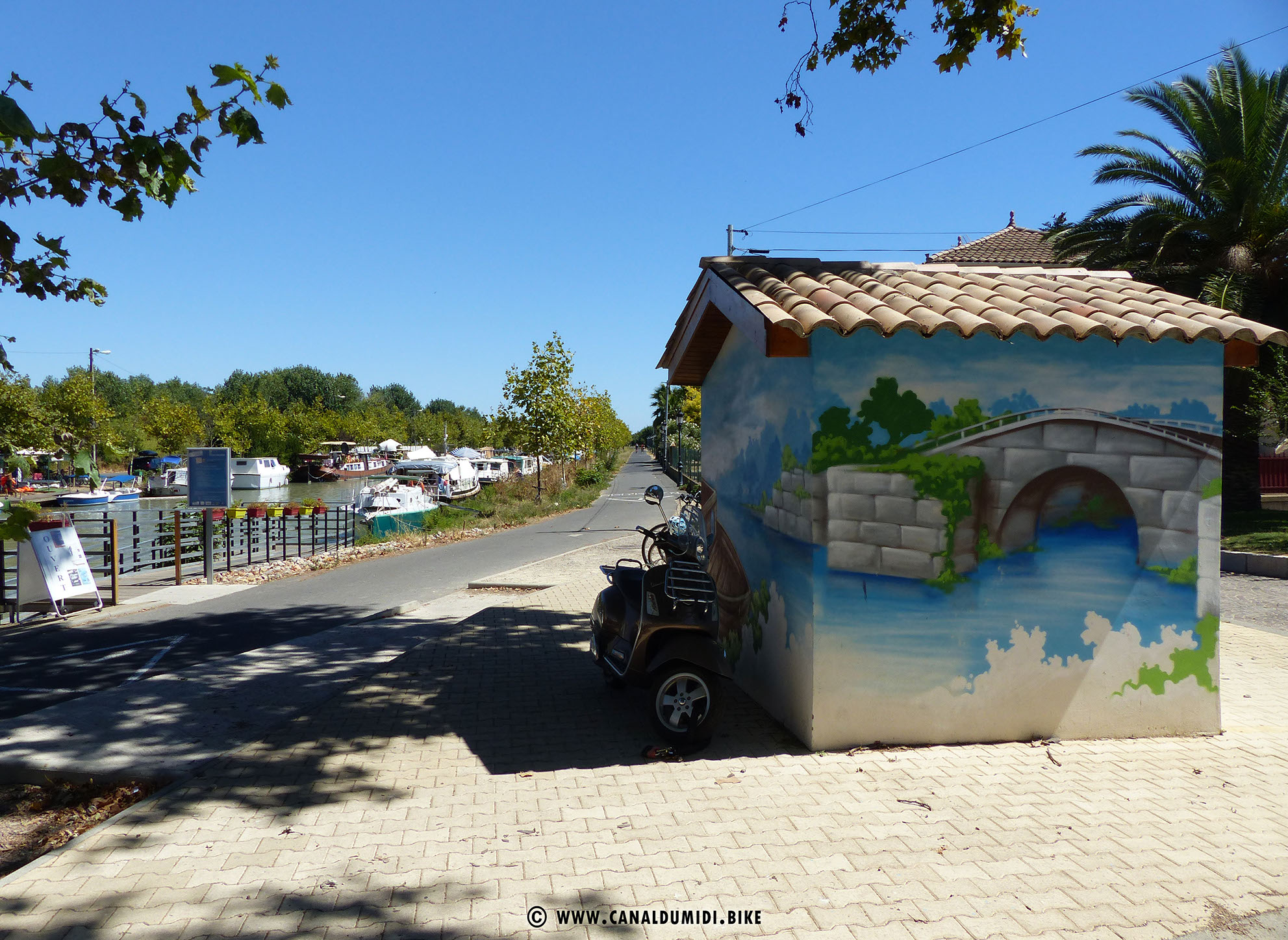 There are several good restaurants located in Villeneuve Les Beziers, but they are only open from noon to 2 PM, and from 7 PM onward for dinner. A tourist office is located on a small boat right after this lock.
